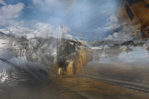 The primary inspiration for my Digital Paintings is located in the midst of the cultural and architectural turmoil of Manhattan. Nature and the mountain gradually integrated my digital collages thereafter. After the Alps I have included in my collages for 12 years, the last 5 years I have been exploring the Mediterranean Sea and the Aegean Sea. I also naturally developed cultural links with Anatolia and the Caucasus, an open gate toward the Eurasian Silk Roads (away from the clouds of the contemporary history of this region). The Caucasus and Central Asia is a region of the world offering unique landscapes and a fascinating hybrid culture between Europe and the Oriental World.